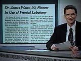 Dr. James Watts, a neuro-surgeon who performed the first frontal lobotomy, died this week in Washington. If you recall, a lobotomy involves drilling holes in the skull, and then inserting and rotating a knife to destroy brain cells. [pause. Enthusiastically] What a genius. He'll be missed!